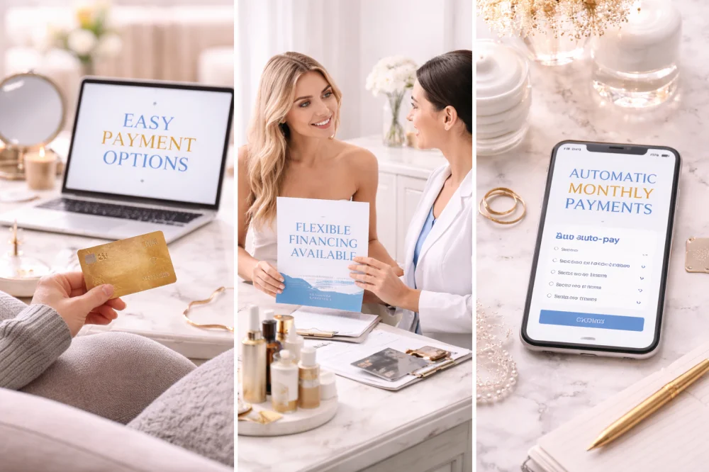 We assist clients by helping them understand available third-party payment and financing options that may be offered by licensed providers for elective aesthetic procedures. Available options can vary based on the provider and the individual client’s circumstances.
